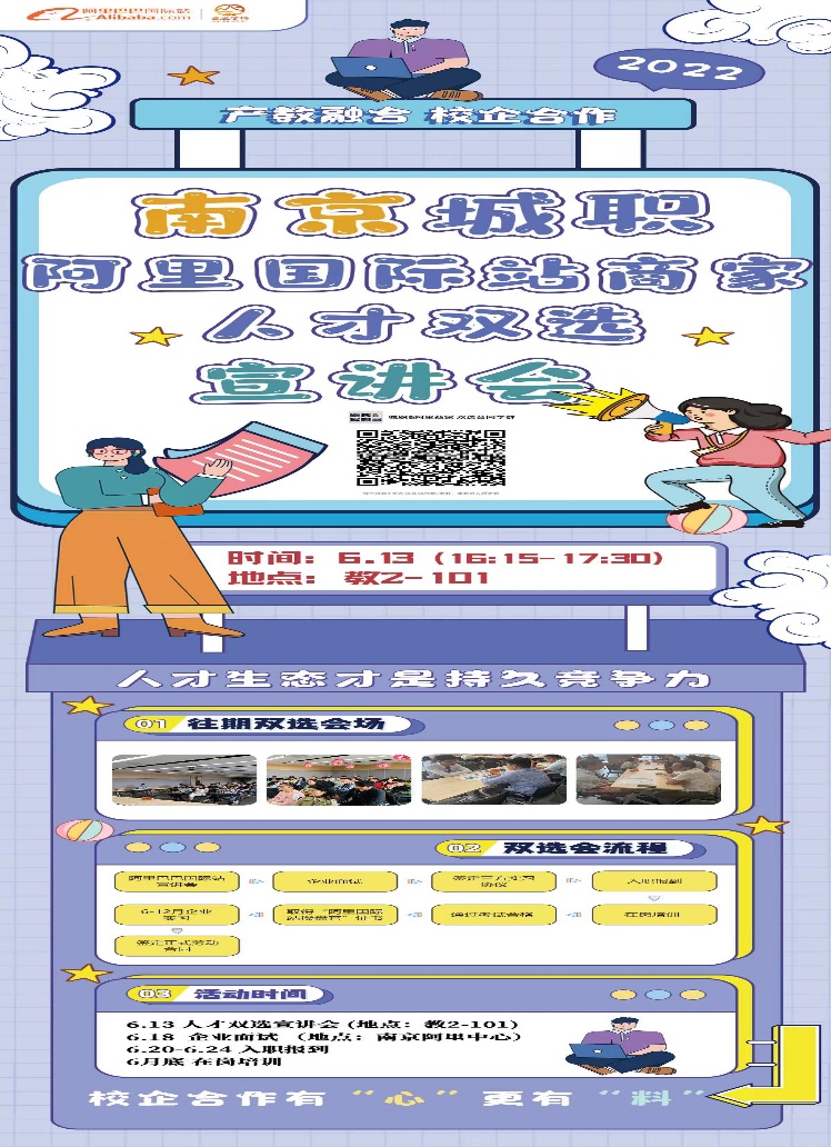 为了贯彻落实教育部等八部门印发的《职业学校学生实习管理规定》(教职成〔2021〕4号)及学校印发的《日韩欧美福利视频_黑人巨大人精品欧美三区_欧美成人另类人妖_欧美在线精品一区二区三区_欧美一区二区三区性视频_日韩精品欧美视频_性欧美极品xxxx欧美一区二区学生顶岗实习管理办法(修订)》(宁城职院〔2021〕55号)等文件精神,数字财商学院于2022年 6 月13 日联合阿里巴巴国际站南京大渠道部,共同举办了题为“校企合作 有心更有料”的学生实习宣讲。阿里巴巴国际站南京大渠道部区域主管许小然、宁扬区域业务主管赵文轩受邀主讲,数字财商学院刘红副院长、丁亮副院长以及跨境电商专业负责人滕静涛参加本次活动,2020级、2021级跨境电子商务、国际商务、商务管理、物流管理等专业学生聆听了企业宣讲。