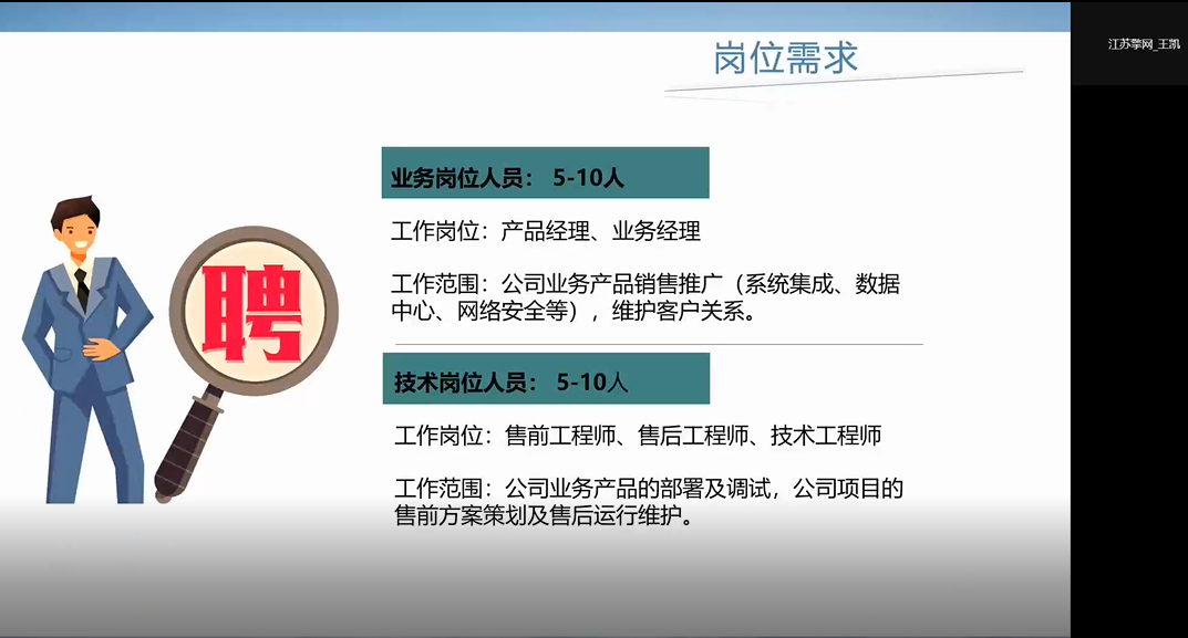 受疫情影响,本次实习就业双选会采用线上腾讯会议的方式开展。活动伊始,主持人智能工程学院产教融合办公室金贤老师隆重介绍了参加此次双选会的各家企业,并对活动流程进行了讲解。本次岗位双选会提供实习就业岗位70余个,计划招聘300余人,涵盖软件技术、智能网联、新能源汽车、智能控制、智能电子等行业的技术技能型人员、职能管理人员、操作岗位人员等,参会的企业有西门子数控(南京)有限公司、创维电器股份有限公司、比亚迪股份有限公司溧水分店、南京泉峰科技有限公司、南京宁瀚通信系统有限公司等11家企业。今年以来,为缓解严峻的实习就业形势,智能工程学院产教融合部门从3月份开始就把实习就业服务由点及面、由校内到校外、由学生到教师全方面铺开,在做好新冠肺炎疫情防控的基础上,开展实习就业招聘会,为毕业生求职牵线。