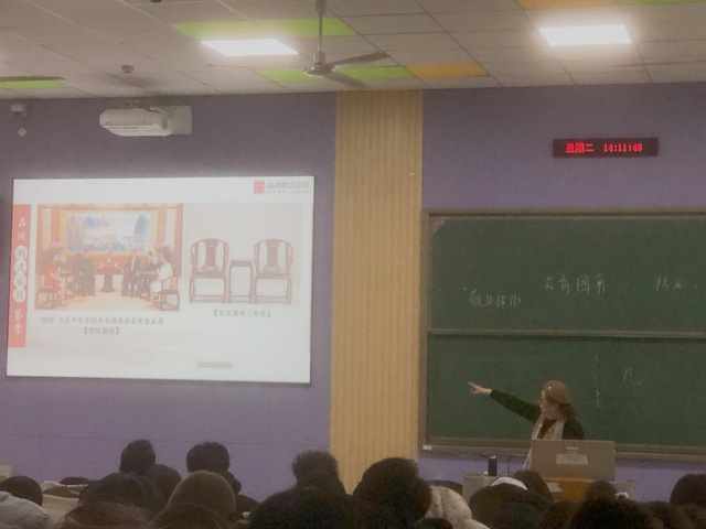 12月26日下午,我校产业教授、江苏品润文化公司袁静老师来到数字文创学院,结合艺术概论课程开展“明式家具之美”艺术鉴赏主题讲座。江苏品润文化公司是明式家具制作技艺(古典家具修复)荣誉单位,承接过多项国家级博物馆、名人故居苏作家具的复刻及修复项目。参加本次讲座的为23级环境艺术专业的。