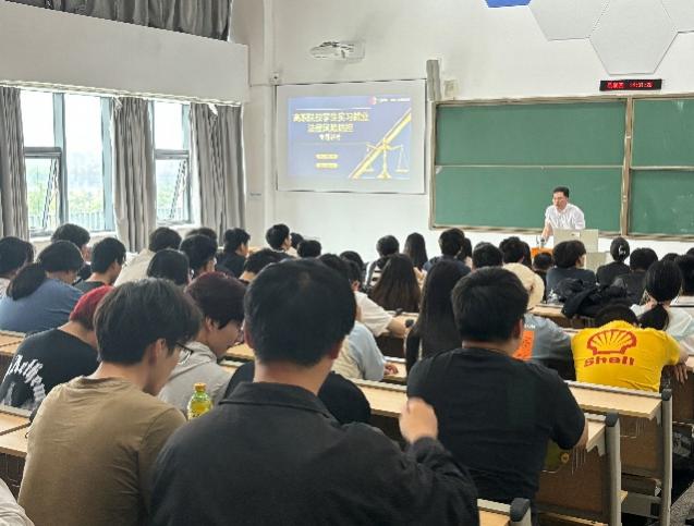 智能工程学院始终重视对学生实习过程的全方位指导,规范化、专业化管理是学院实习就业工作建设的重点内容之一。本次讲座是学院深化产教融合、加强学生实习管理的重要举措之一。通过蔡俊旺的精彩讲解,同学们不仅对实习期间可能面临的法律风险有了更加清晰的认识,还掌握了有效防范和应对法律问题的方法,让毕业生更有信心能够在实习期间更好地保护自己的权益,安全、顺利地完成实习任务,为未来的职业生涯奠定坚实的基础。