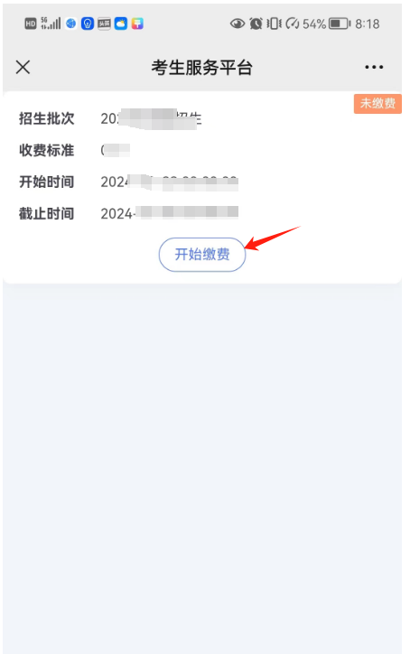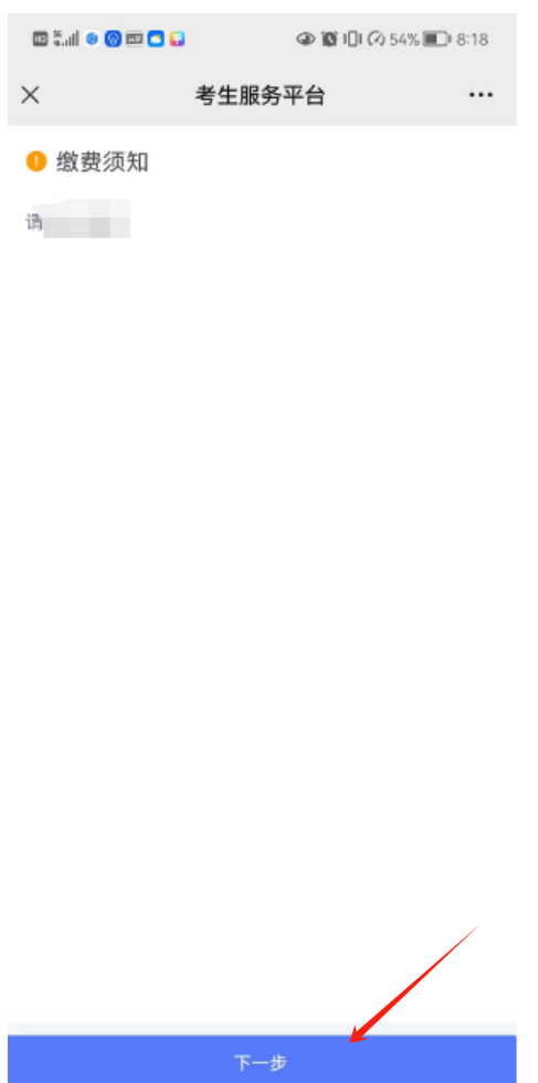 (1)点击上图的首页按钮回到主页,在常用服务里点击考试缴费,进入缴费页面,如下图所示: