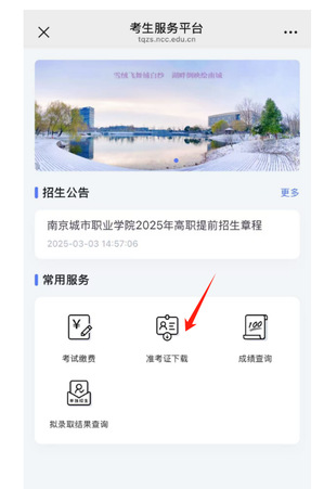 我校2025年提前招生开通考生服务平台,为大家提供缴费、准考证打印以及后期的成绩查询、录取查询等服务。