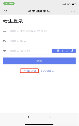 (2)如果没有注册过账号,则先点击立即注册按钮后进入注册页面。
