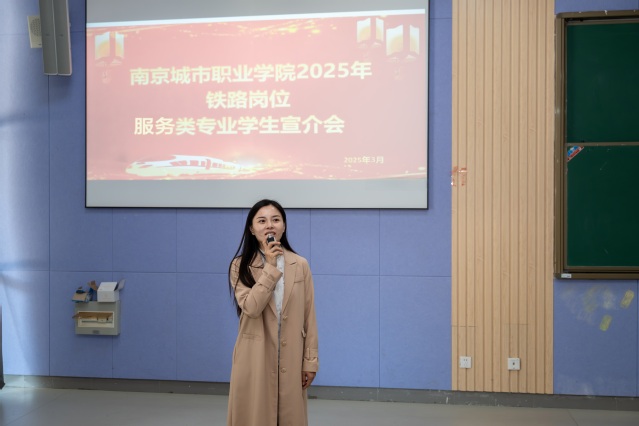 名企进校园,共绘职业蓝图宣讲会前,学院针对空中乘务专业特色,专任教师和辅导员为学生讲明目前就业形势要求和相关政策,广泛宣传,积极动员学生参加。宣讲会开始,陈乃鸿热情致辞随后,邢菲向全体学生全面介绍江苏动铁集团的发展历程、行业地位及未来战略布局。江苏动铁作为区域内铁路交通人力资源管理知名企业,一直高度关注专业人才的培养与发展。她表示:“江苏动铁拥有完善的实习培训体系和广阔的职业发展空间,将为学生提供更多的实践机会和良好的职业发展前景他们期待与学院深化合作,吸纳更多专业扎实、实践能力突出的优秀学子加入,共同推动轨道交通产业的高质量发展。