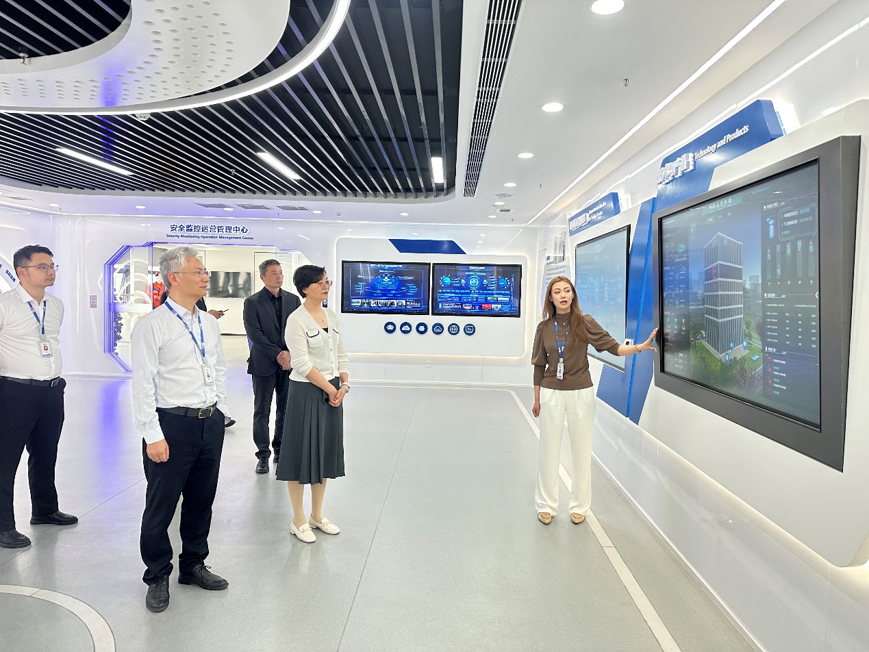 倪杰一行在骆德龙的陪同下,参观了嘉环科技品牌形象展厅与华为培训中心,深入了解企业在人工智能、新兴通信、核心软件等领域的业务布局和成果荣誉,并对嘉环科技在职业教育领域的创新实践留下深刻印象。