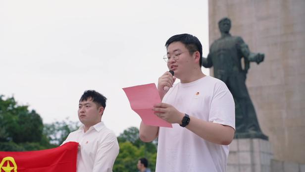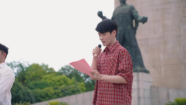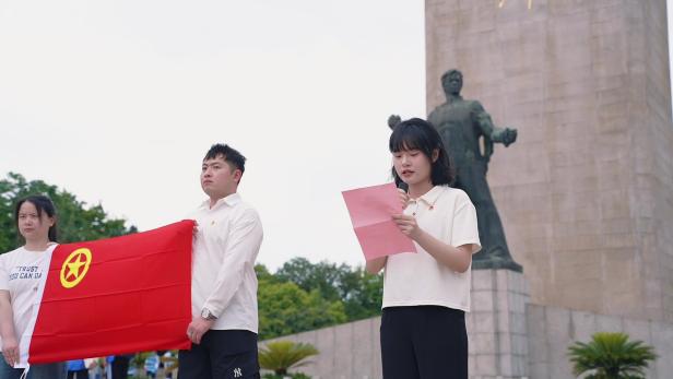 最后,全体人员齐唱团歌,激昂的旋律回荡在雨花台烈士纪念地上空。仪式结束后,新团员们前往雨花剧场观看话剧《代号1921》,通过沉浸式的体验进一步感悟革命先辈的奋斗精神。